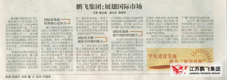 經(jīng)過幾年的實踐,鵬飛不僅成功“走出去”占領(lǐng)了國際市場,而且在國際市場上樹立了“鵬飛制造”的品牌形象。