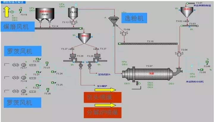• 煤磨系統(tǒng)溫度、壓力的控制。