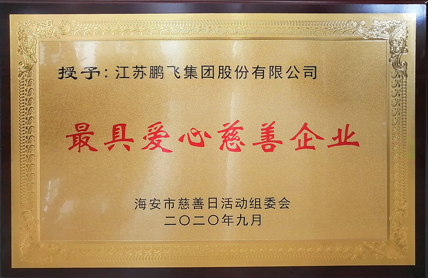 近日,海安市慈善基金會(huì)表彰了慈善工作先進(jìn)集體和先進(jìn)個(gè)人,基于在履行社會(huì)公益責(zé)任方面的突出表現(xiàn)和良好反響,江蘇鵬飛集團(tuán)被慈善基金會(huì)授予“最具愛心慈善企業(yè)”稱號。