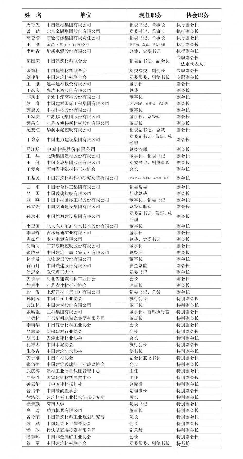 中國建筑材料聯(lián)合會第六屆理事會負責人名單