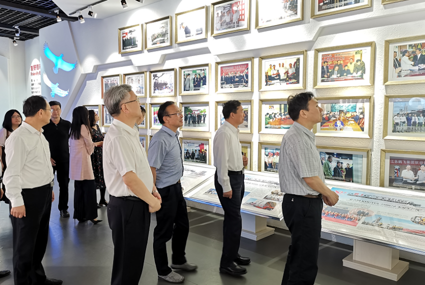 江蘇鵬飛集團(tuán)股份有限公司董事長王家安帶領(lǐng)調(diào)研組一行,參觀了生產(chǎn)車間和展廳,向調(diào)研組介紹企業(yè)國內(nèi)外發(fā)展定位及在“一帶一路”沿線國家落地項目的概況,向調(diào)研組介紹企業(yè)現(xiàn)階段發(fā)展?fàn)顩r、海外項目運(yùn)行情況及企業(yè)未來發(fā)展愿景。