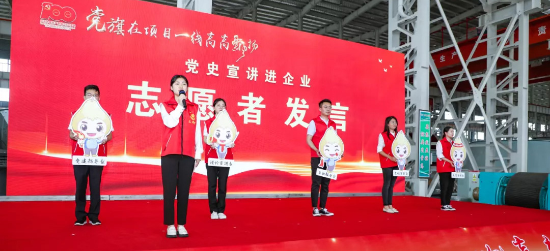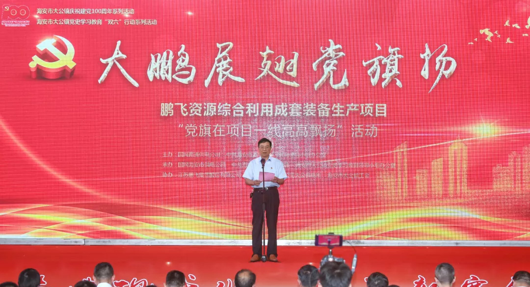 “將企業(yè)生產經營與項目建設融入黨史學習教育,以黨建為引領,讓支部建在項目上、黨旗飄在陣地上、黨員沖在火線上、關愛工人在心上,切實讓黨旗在項目一線高高飄揚……”6月16日下午,鵬飛資源綜合利用成套裝備生產項目“黨旗在項目一線高高飄揚”活動舉行,這也是海安市推動黨史學習教育“走深”“走心”“走實”,黨員干部在項目一線“建強組織筑堡壘、做優(yōu)服務強項目、為民辦事解難題”的真實寫照。