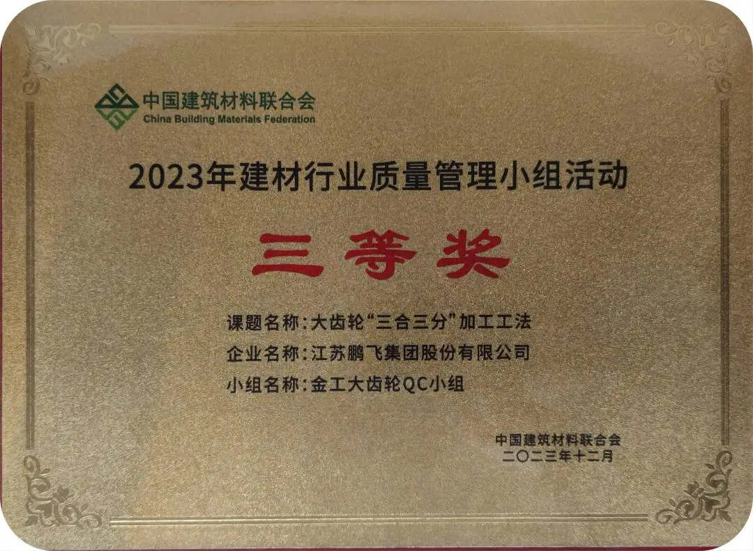 近期,中國(guó)建筑材料聯(lián)合會(huì)組織召開(kāi)第三十九次建材行業(yè)質(zhì)量管理小組代表大會(huì)暨質(zhì)量信得過(guò)班組經(jīng)驗(yàn)交流大會(huì),會(huì)上頒發(fā)了2023年建材行業(yè)優(yōu)秀質(zhì)量管理小組和質(zhì)量信得過(guò)班組、先進(jìn)個(gè)人和優(yōu)秀組織榮譽(yù)證書(shū)。鵬飛金工大齒輪“三合三分”加工工法獲得“2023年建材行業(yè)優(yōu)秀質(zhì)量管理小組三等獎(jiǎng)”;輥壓機(jī)二組QC小組的輥壓機(jī)鑄釘輥制造工藝研究與改進(jìn)獲得“2023年建材行業(yè)優(yōu)秀質(zhì)量管理小組優(yōu)秀獎(jiǎng)”,同時(shí)QC小組獲評(píng)“我最喜愛(ài)的質(zhì)量管理小組”。