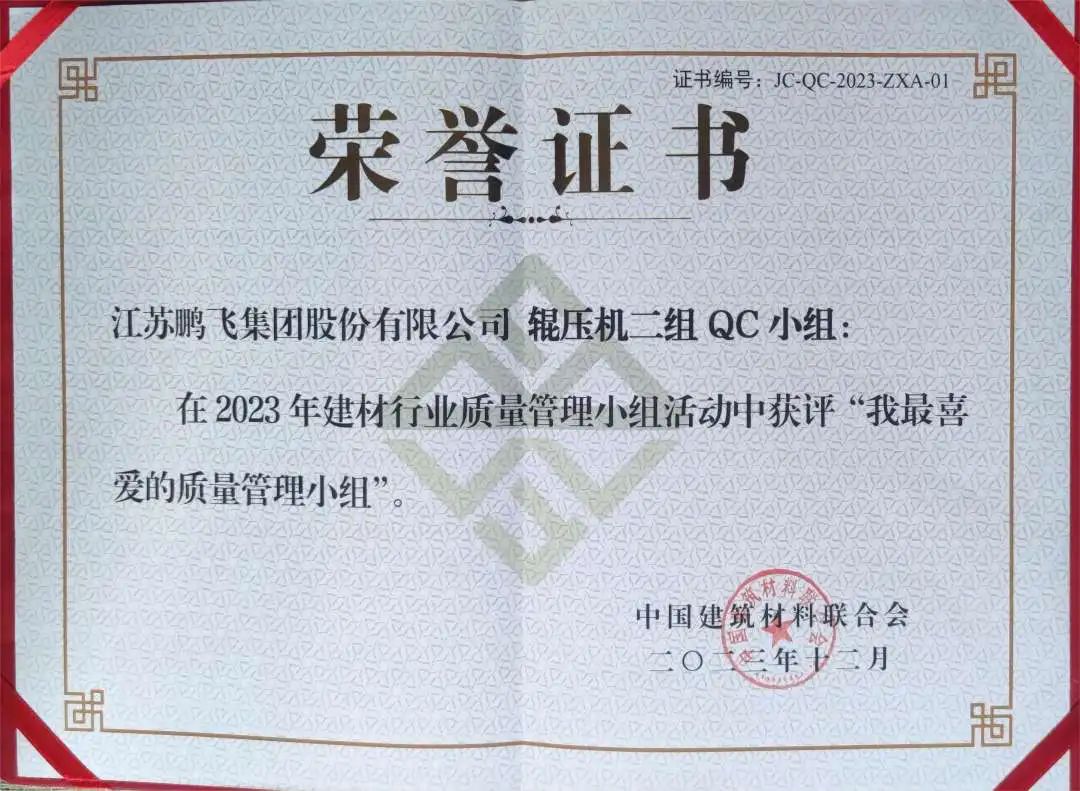 會(huì)上,鵬飛集團(tuán)作了2024年建材行業(yè)質(zhì)量管理小組活動(dòng)成果和質(zhì)量信得過(guò)班組建設(shè)典型經(jīng)驗(yàn)發(fā)表,以下是鵬飛輥壓機(jī)二組QC小組的課題。
