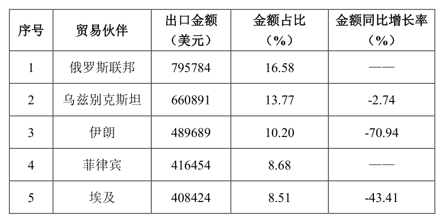 表2 2021年水泥回轉(zhuǎn)窯主要出口國家或地區(qū)情況
