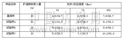 隨著高性能混凝土技術(shù)的發(fā)展與應(yīng)用,礦渣微粉已成為混凝土制備中不可或缺的第六組分材料(人工礦物摻合料)。?;郀t礦渣系冶煉生鐵時排出的工業(yè)廢渣,每生產(chǎn)一噸生鐵,大約排出300~1000kg礦渣,其礦物成份在Cao-Sio2-Al2o3三元相圖中處于C2AS、CAS2、CS、C2S結(jié)晶區(qū),大致化學(xué)成份為CaO34~46%、SiO222~40%、Al2O35~15、MgO2~13%,并含有少量FeO、MnO、S及TiO2和金屬鐵。礦渣出爐時經(jīng)水淬急冷,保留了微晶態(tài)的高活性玻璃體結(jié)構(gòu),其有較高的潛在物理化學(xué)活性,在含有硫、堿成份的水化環(huán)境中可激發(fā)出良好的水硬活性(如前蘇聯(lián)研究的堿-礦渣高強(qiáng)水泥屬此類),可將礦渣看作是一種經(jīng)過高溫煅燒的高硅、低鈣熟料。礦渣采用機(jī)械力活化,磨細(xì)制得的微米級粉體,具有潛在水硬性礦物的晶格產(chǎn)生畸變,發(fā)揮出優(yōu)良的水化膠凝活性。磨細(xì)礦渣微粉摻入水泥中的強(qiáng)度試驗結(jié)果見表6: