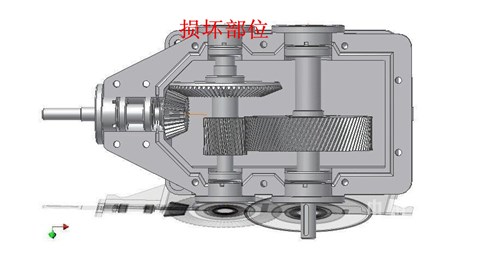 第二部分:減速機損壞維修以及后期防護。本公司四個鎖風(fēng)閥的減速機都采用弗蘭德的垂直軸減速機,在鎖風(fēng)閥承受較大力矩的時候,減速機內(nèi)部各級齒輪也相應(yīng)的承受較大的力,同時由于該種減速機二級傳動軸兩側(cè)采用推力調(diào)心滾子軸承,而且軸承端蓋沒有進行螺栓緊固,只是做了密封處理,因此在承受較大力時,也就是在鎖風(fēng)閥卡停的情況下會經(jīng)常出現(xiàn)將兩側(cè)軸承端蓋頂開的情況,浪費潤滑油,增加生產(chǎn)風(fēng)險(如圖三)。