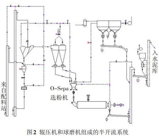 2 輥壓機(jī)和球磨機(jī)組成的半開(kāi)流系統(tǒng)