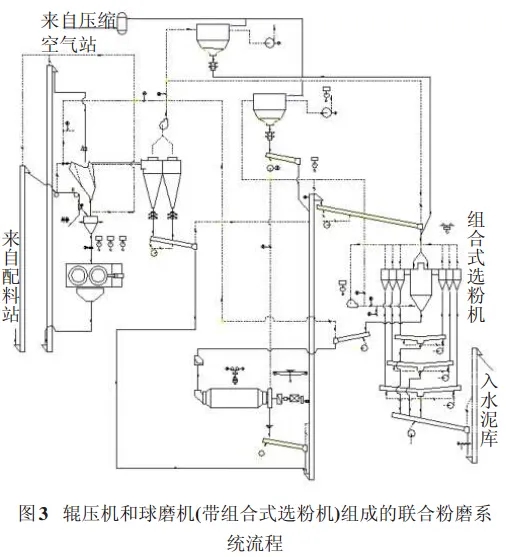 3 輥壓機(jī)和球磨機(jī)(帶組合式選粉機(jī))組成的聯(lián)合粉磨系統(tǒng)