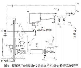 5 輥壓機(jī)和球磨機(jī)(帶渦流選粉機(jī))組成的聯(lián)合粉磨系統(tǒng)