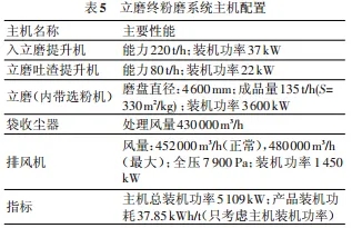 此系統(tǒng)主要由立磨、組合式選粉機(jī)、球磨機(jī)和O-Sepa 選粉機(jī)組成,球磨機(jī)系統(tǒng)為閉路系統(tǒng),流程圖見(jiàn)圖 5,主要的主機(jī)配置見(jiàn)表 4。