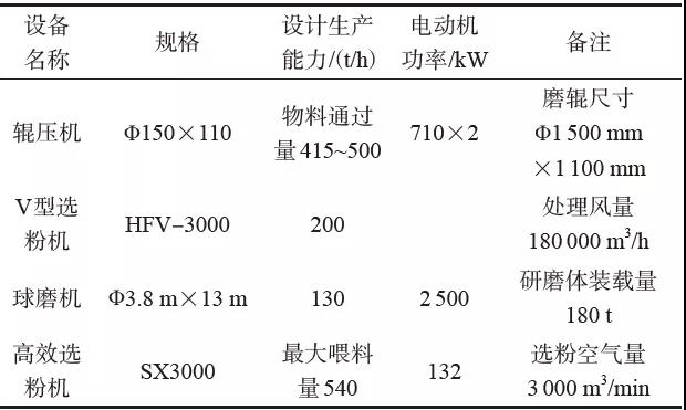 1 試驗粉磨系統(tǒng)基本情況主要設(shè)備配置及性能見表1,物料配比及細度指標(biāo)見表2。