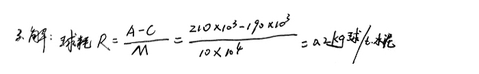 3、一臺(tái)磨機(jī)第一次裝入研磨體的質(zhì)量是210t,中間無補(bǔ)球,經(jīng)過粉磨10萬噸水泥后清倉,清倉后研磨體的總質(zhì)量為190t(不含碎球和過小的球),求該種研磨體球耗。
